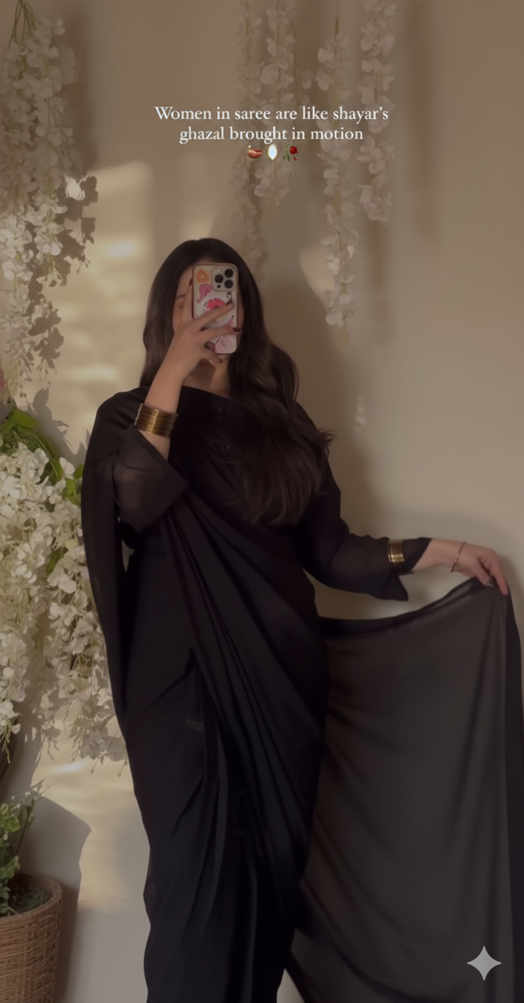 - Style: Ready-to-Wear Stitched Chiffon Saree with Belt