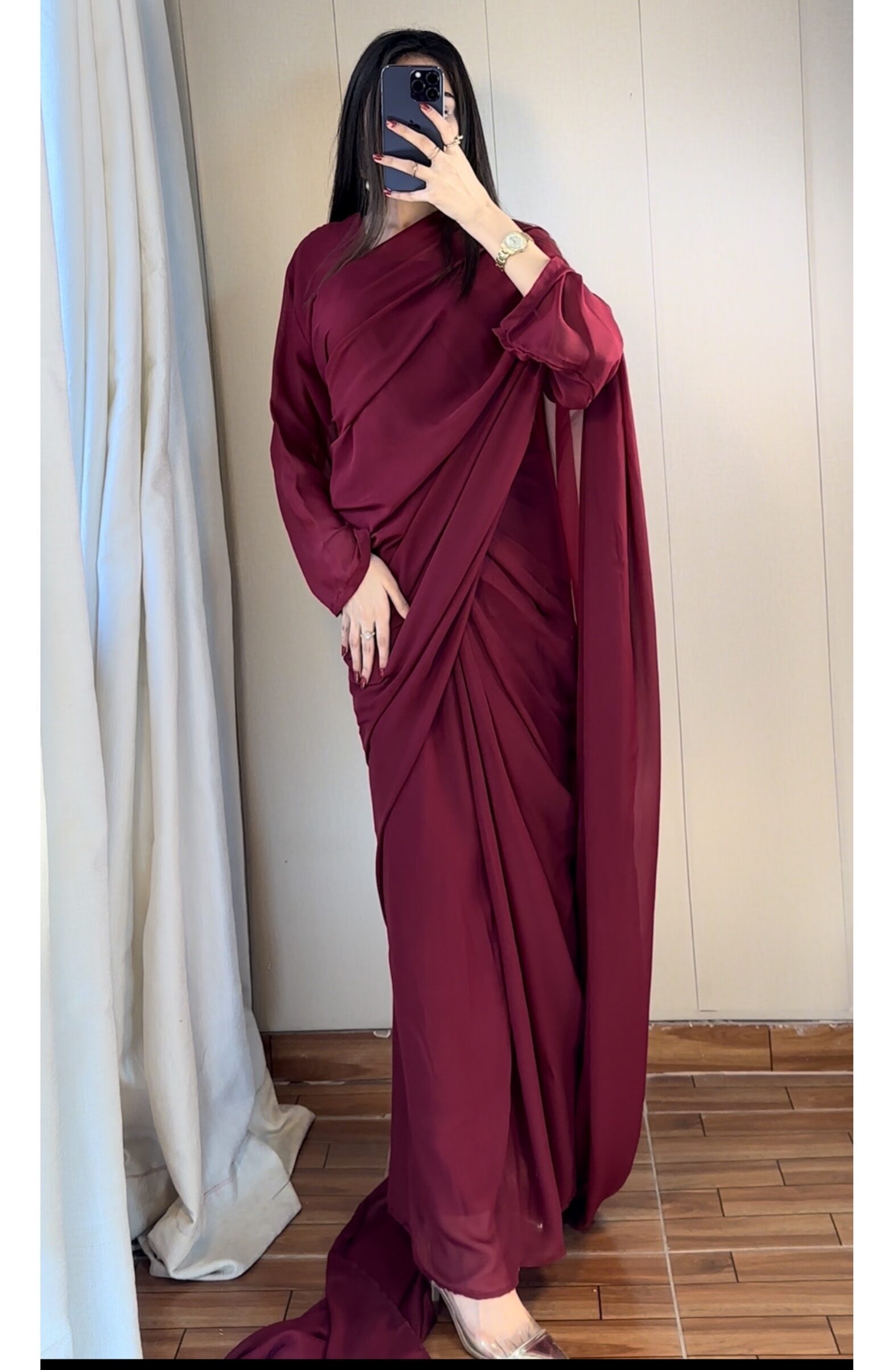 Step into elegance with our Completely Stitched Chiffon Saree, designed for effortless draping and timeless style. Featuring a stitched blouse, stitched saree with belt, and a flowing 7.5-yard pallu, this ready-to-wear ensemble blends grace with convenience. Crafted from premium chiffon, it’s the perfect choice for weddings, festive occasions, and formal gatherings.