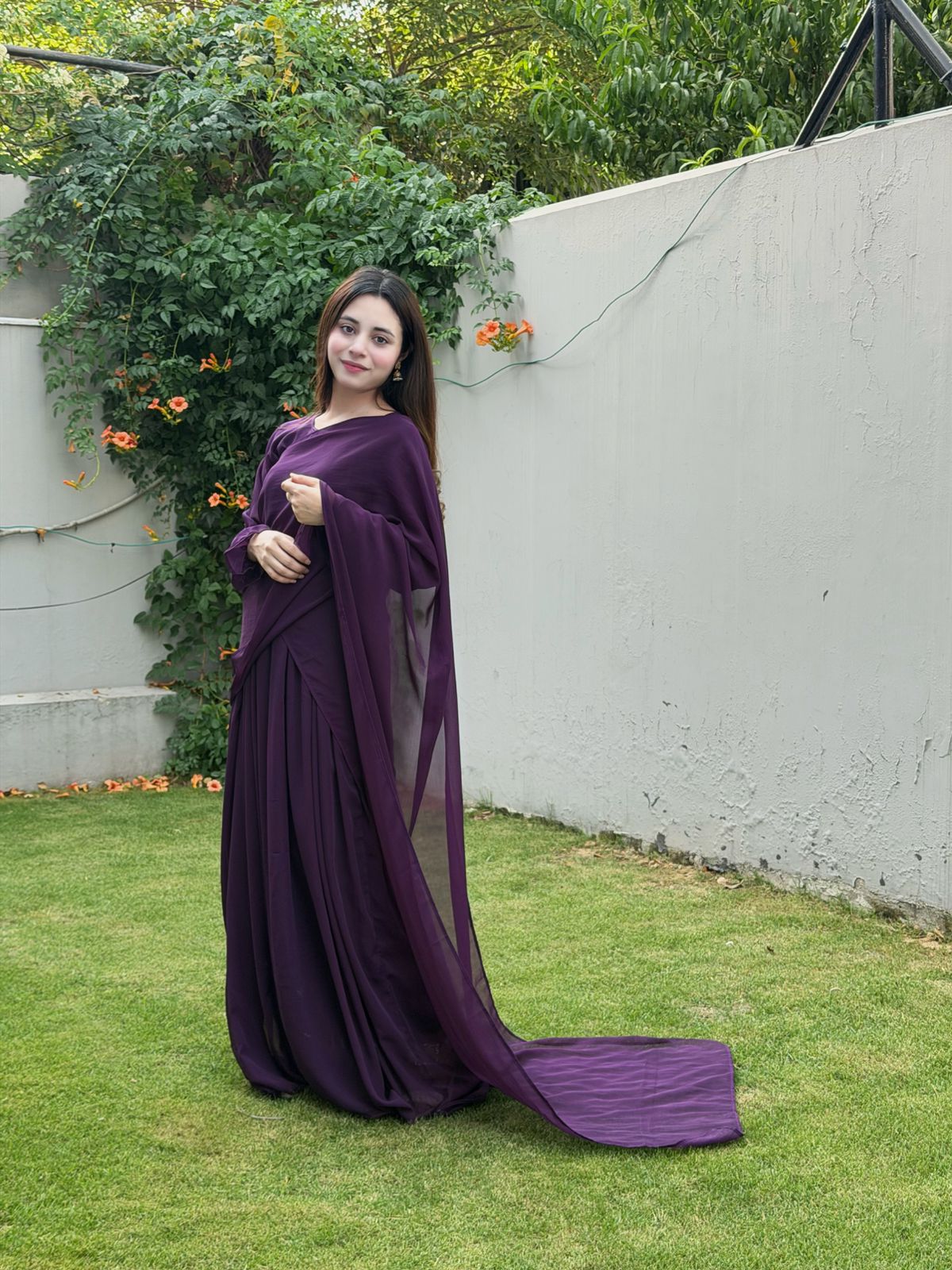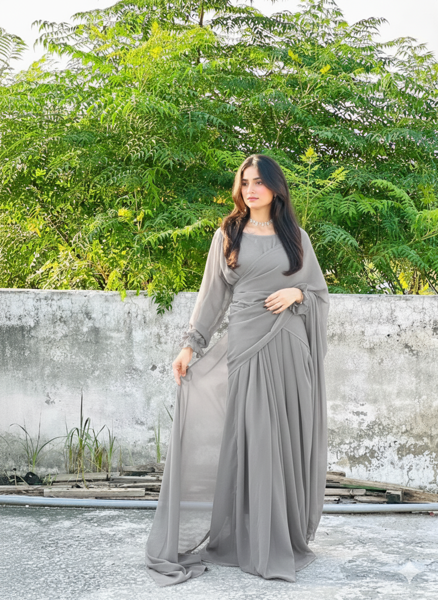 Imported Chiffon Plain Maxi + Saree (2-in-1)