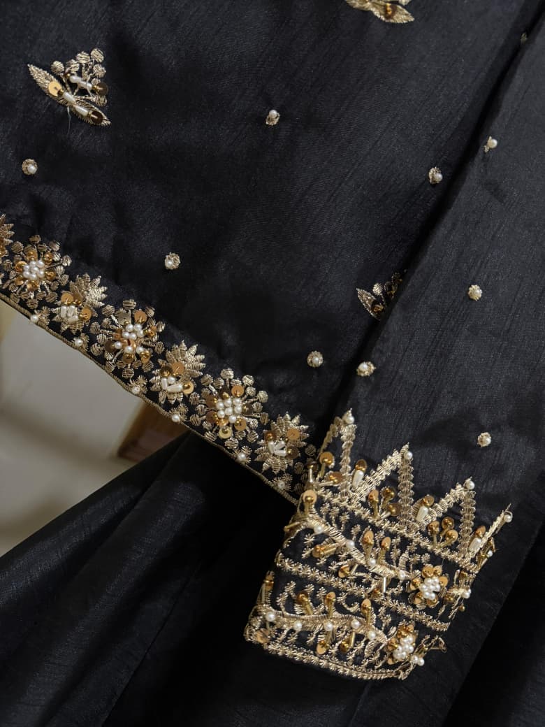 Discover timeless craftsmanship in this Handmade Tilla Embroidered Choli (Kurti) paired with a Pure Raw Silk Lehnga, showcasing detailed embellishments and graceful design.