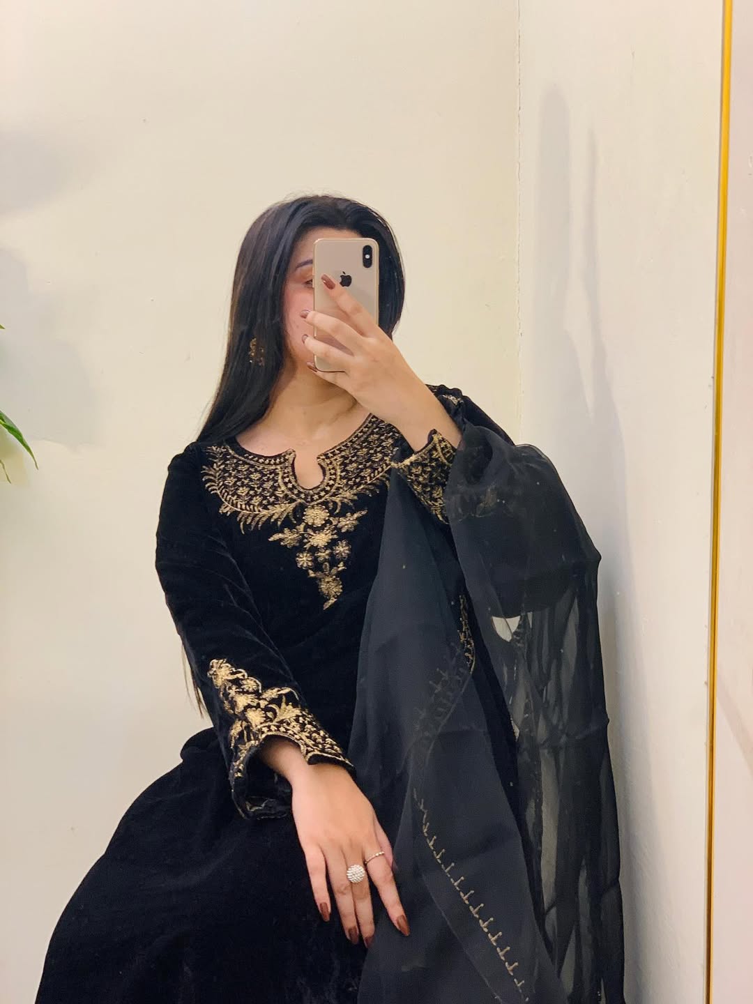 Luxurious Party Wear Velvet Dress with Tilla Embroidery