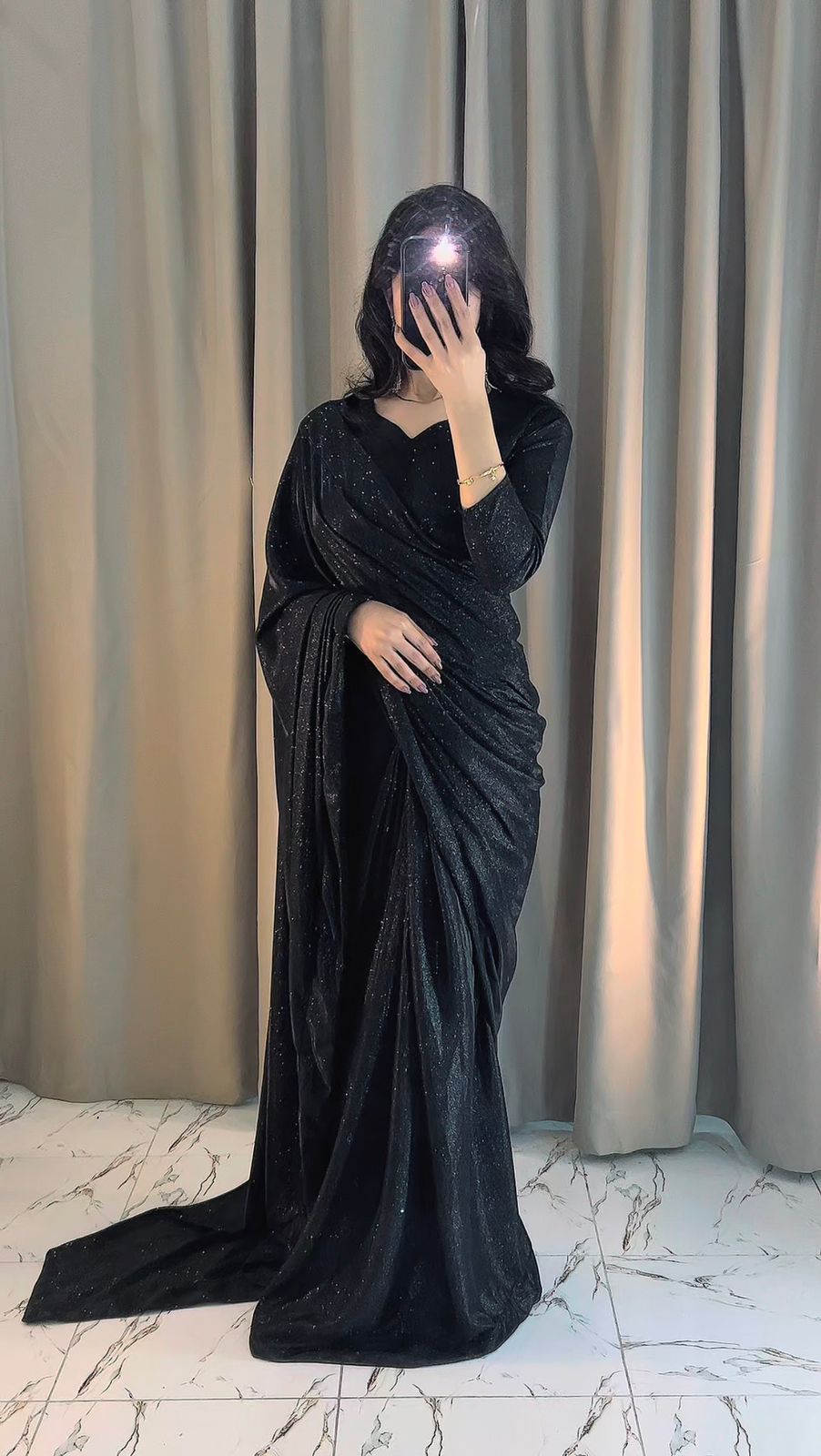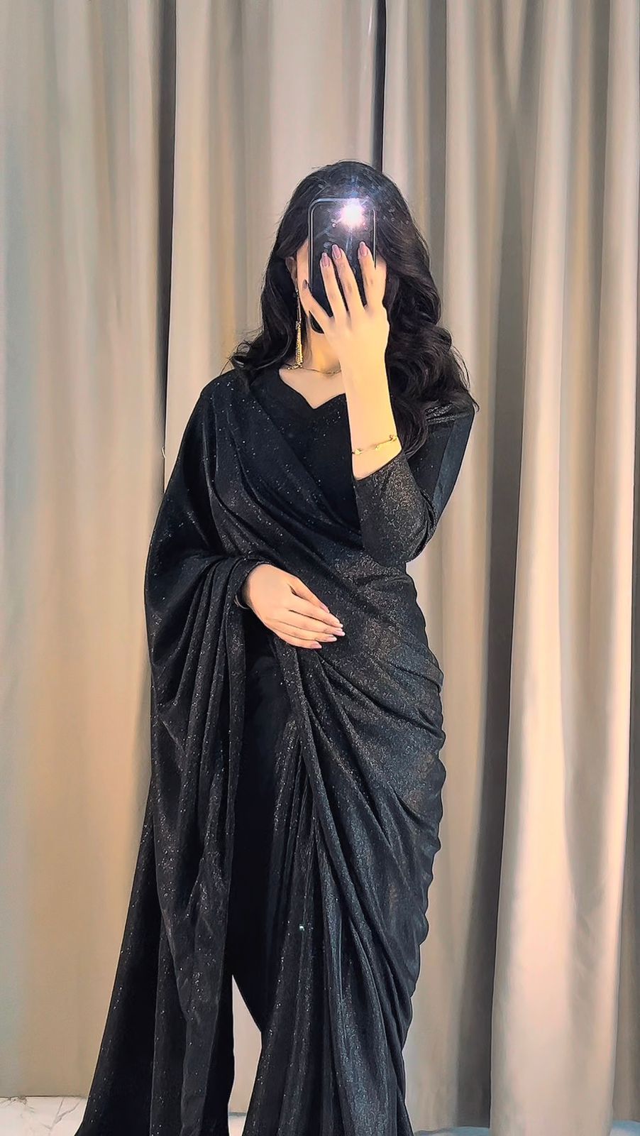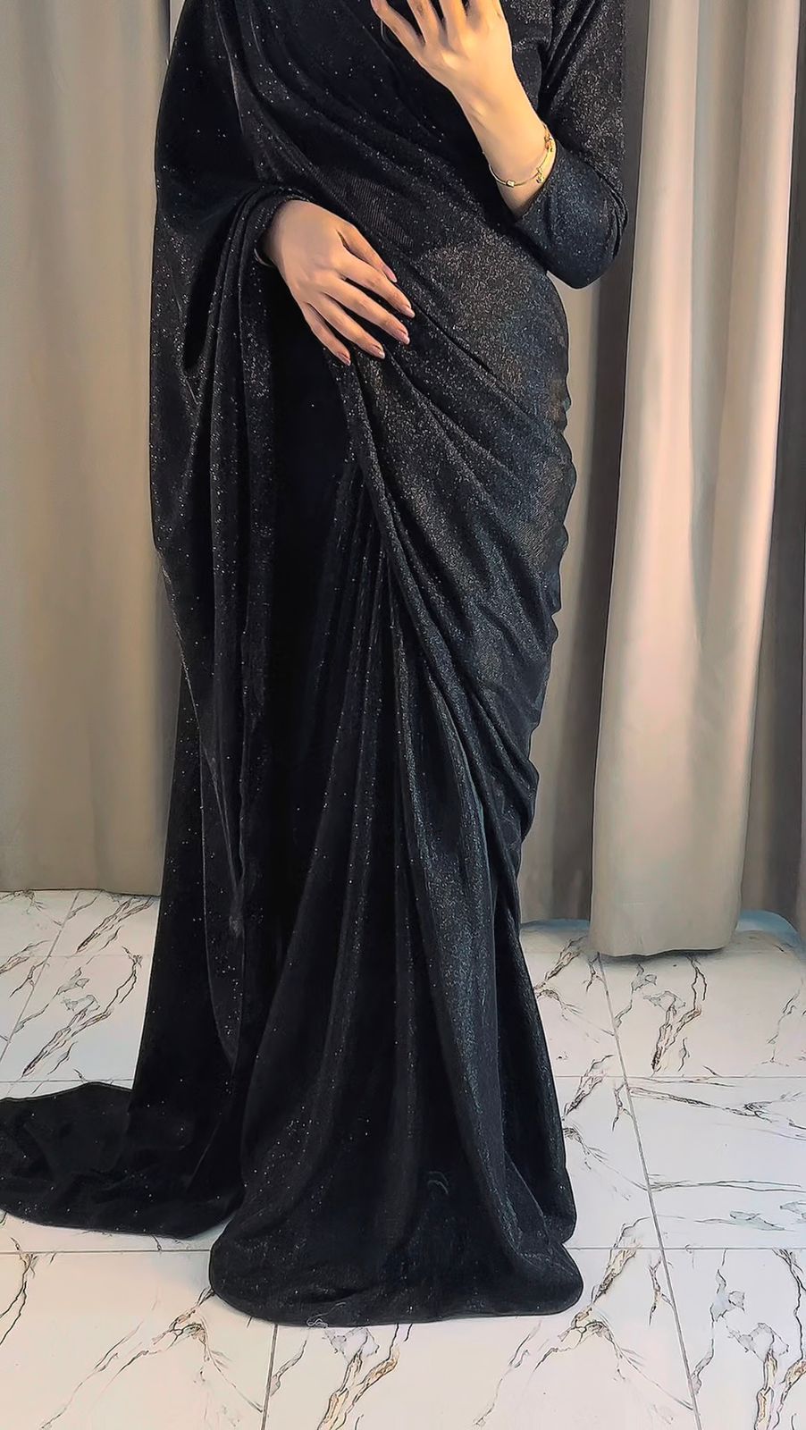 Elegant Premium Moonlight Shimmer Saree, free size fit (S–L), length 43-44. Perfect for weddings, reception & formal wear.