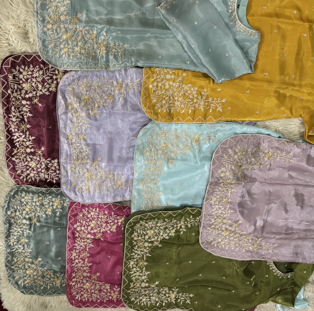 Elegant 3-piece ensemble crafted from Shesha Silk with heavy sequins tilla embroidery.
