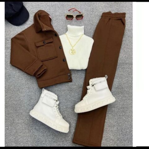 Made from premium fleece fabric, this outfit features a trendy zipper coati paired with a long frock — perfect for casual and semi-formal wear.